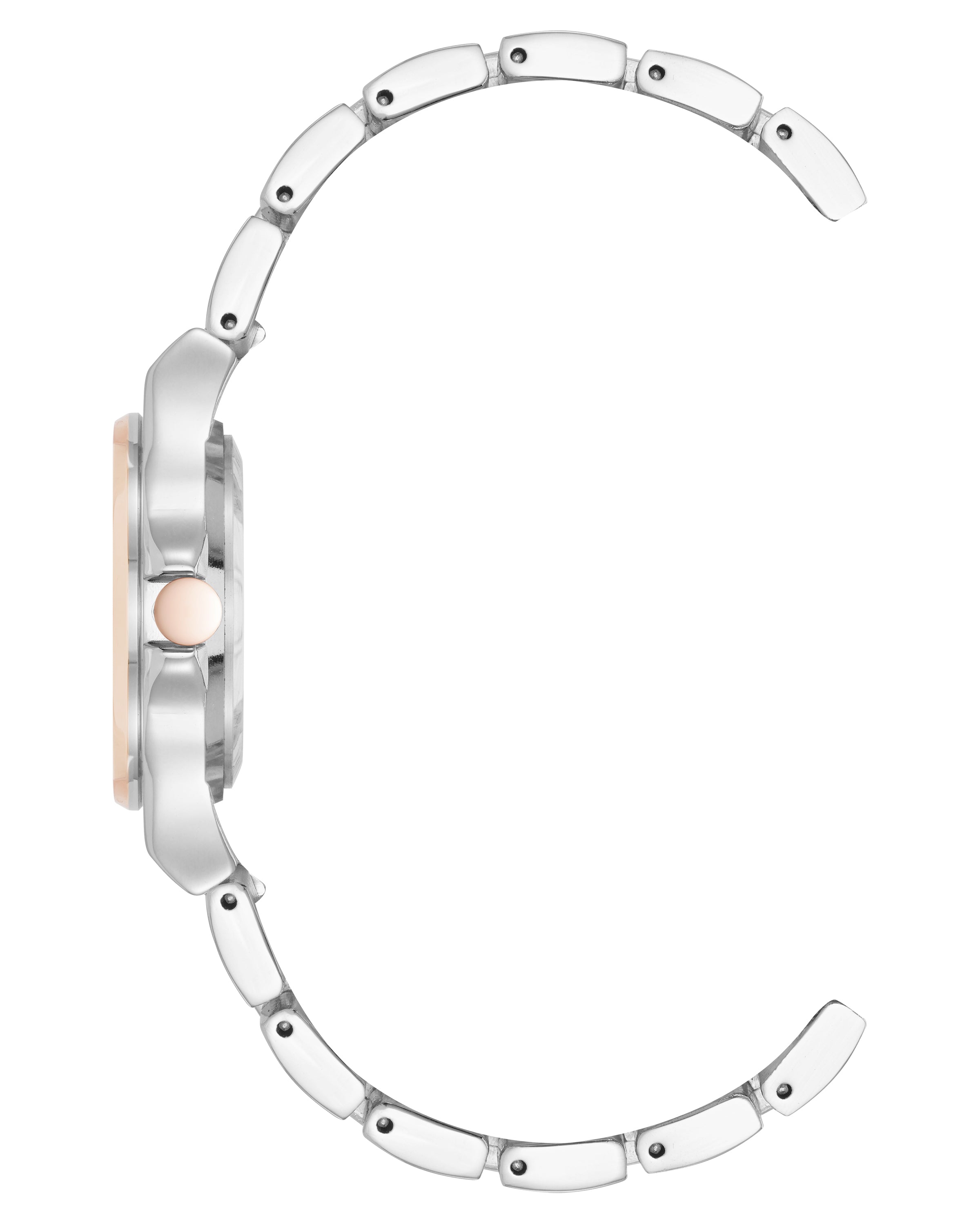 • Adjustable link bracelet; fold over clasp with double push-button safety