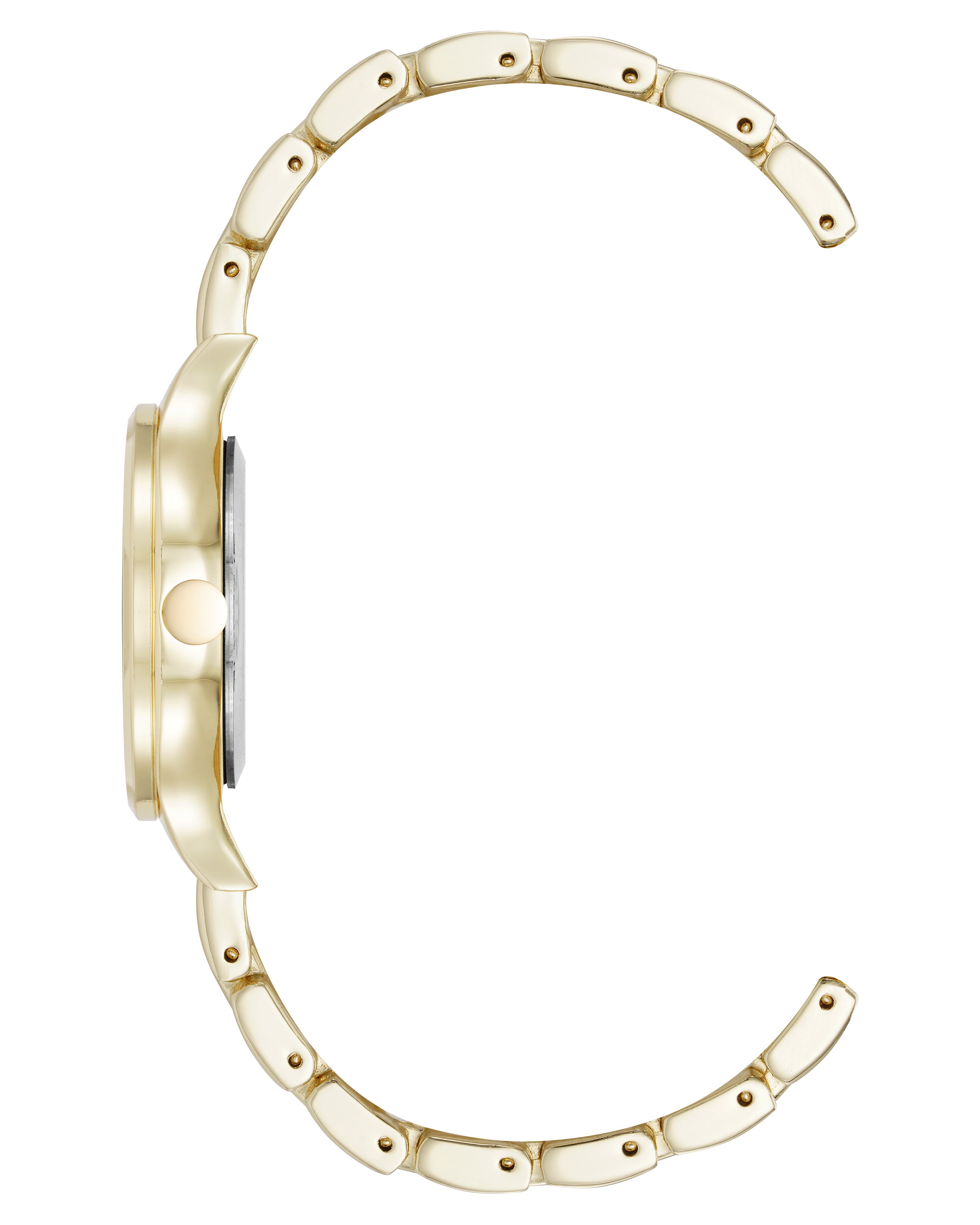 - Adjustable link bracelet; fold over clasp with double push-button safety