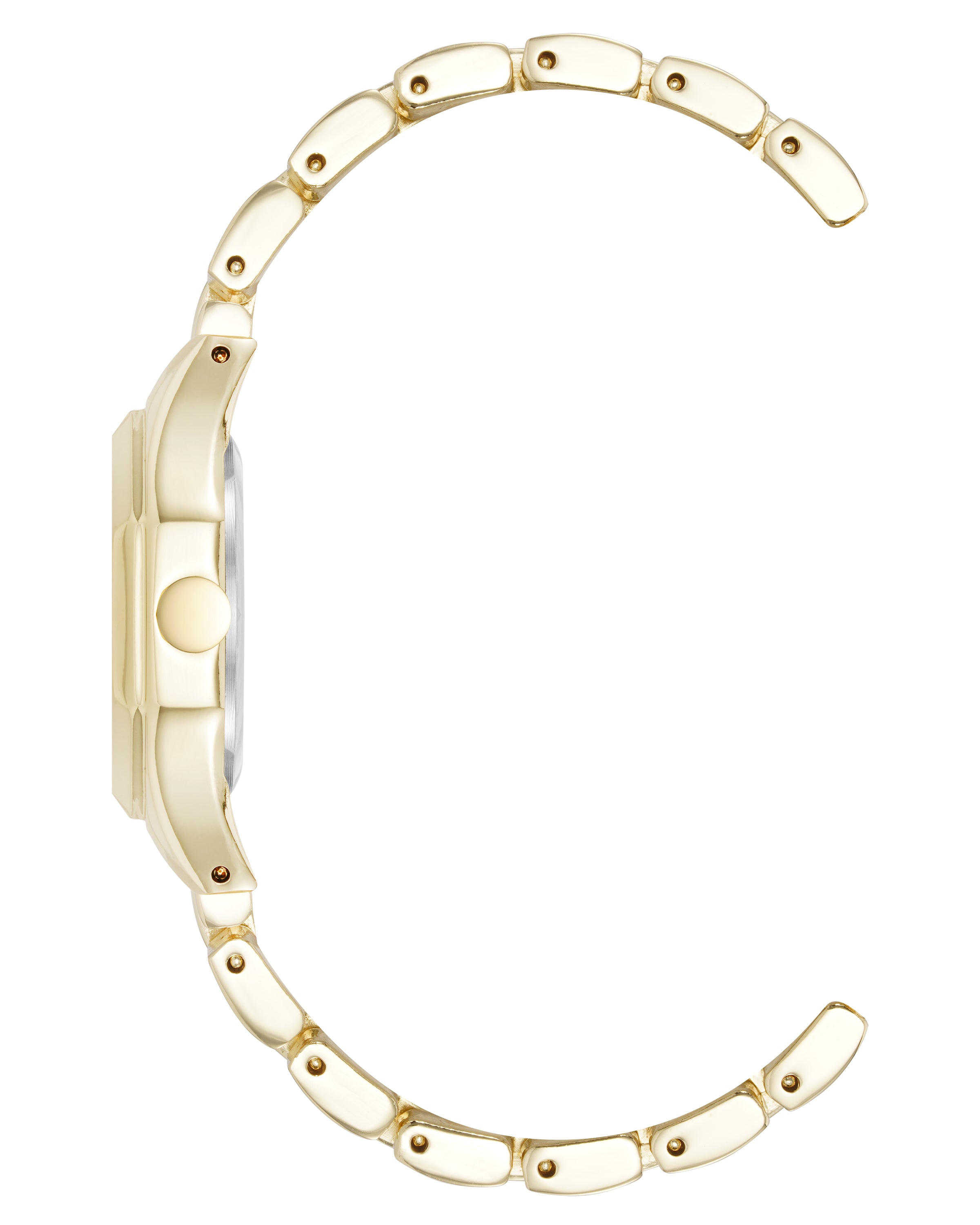 • Adjustable link bracelet; fold over clasp with double push-button safety