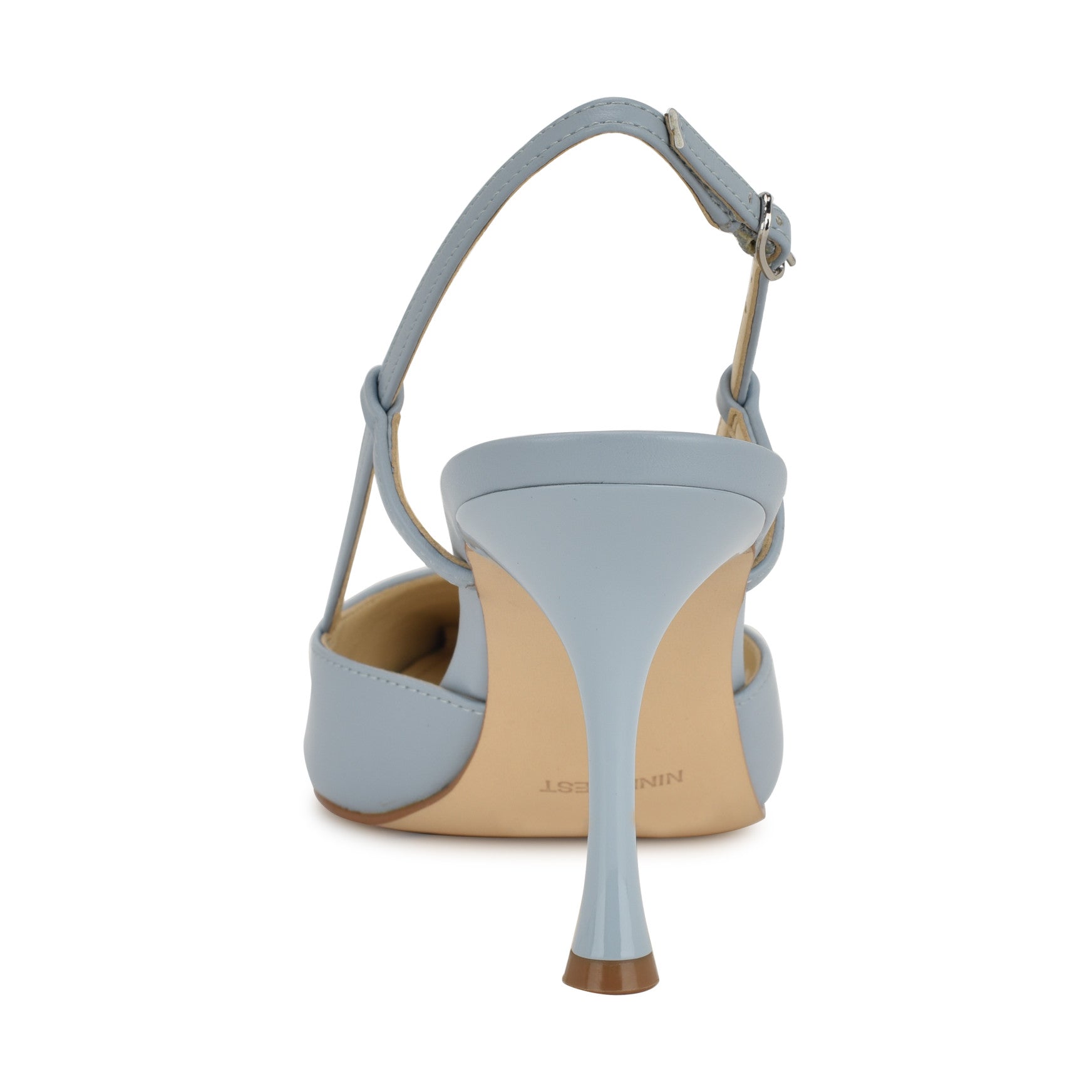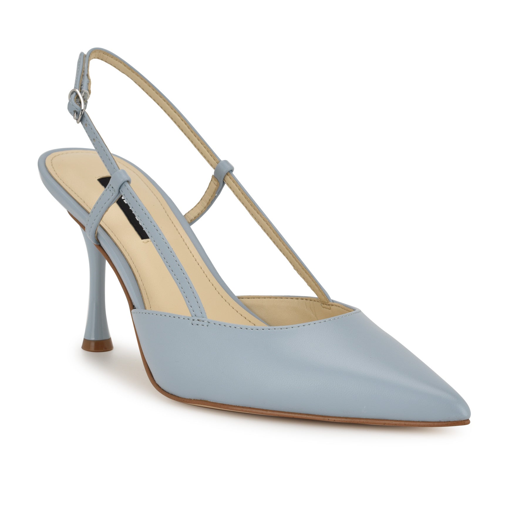 The sculpted heel on the Peni does all the talking. This pointed-toe slingback pump features a delicate T-strap detail with a knotted accent and an adjustable buckle closure, all set on a flared, sculpted heel that gives it an unmistakably modern silhouette. Statement-making from every angle, it's the kind of pump that turns a regular Tuesday into a moment. Available in a range of materials, including genuine leather.