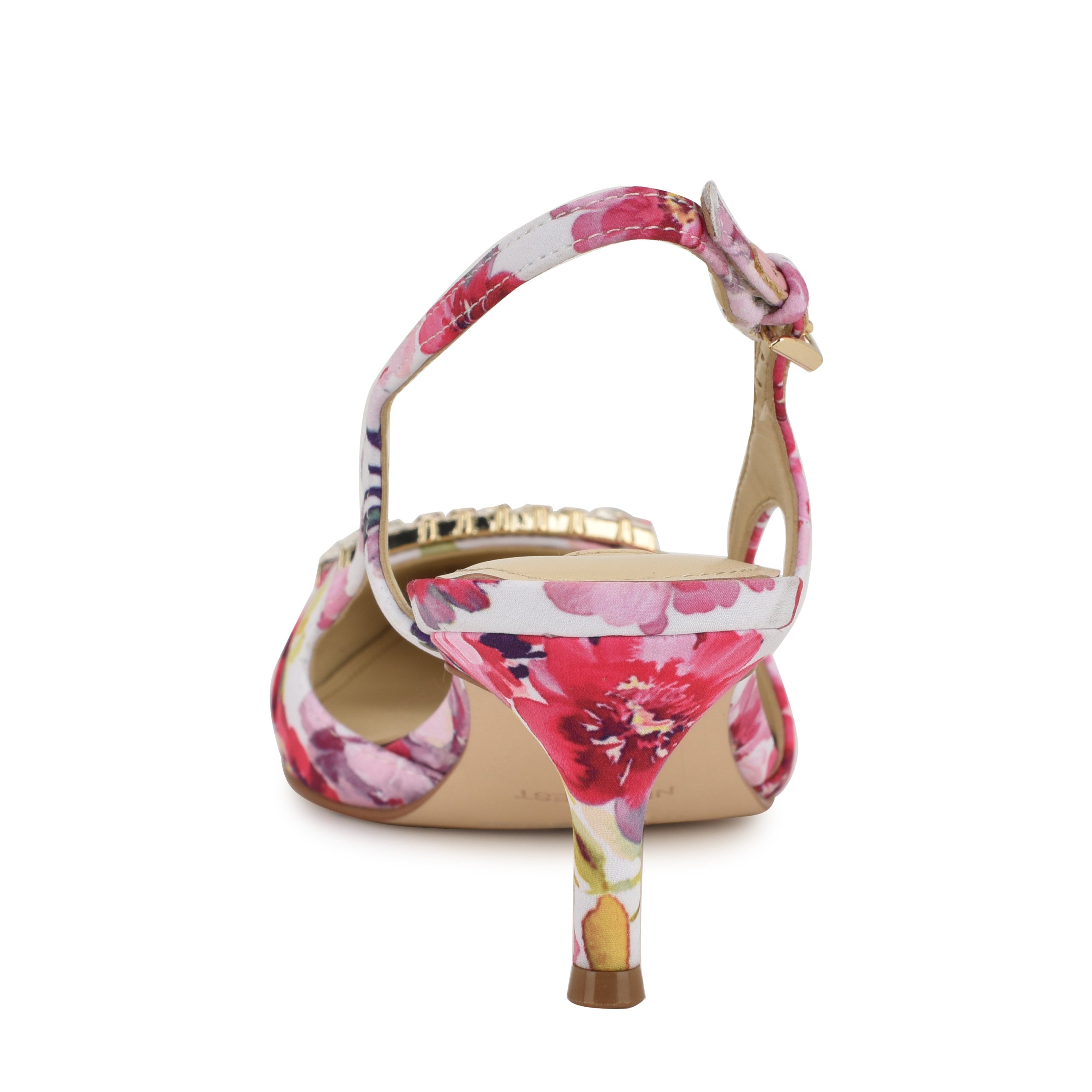 Stay fashionable in the Nine West Neeri dress pumps. It features a pointy toe, slingback strap and a mid stiletto heel. The Neeri will elevate any look!
