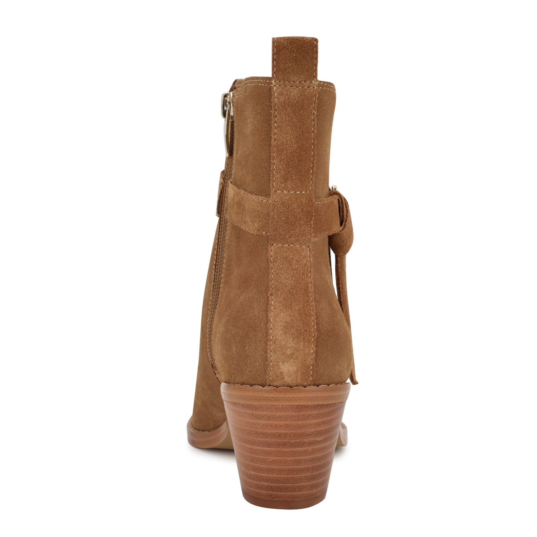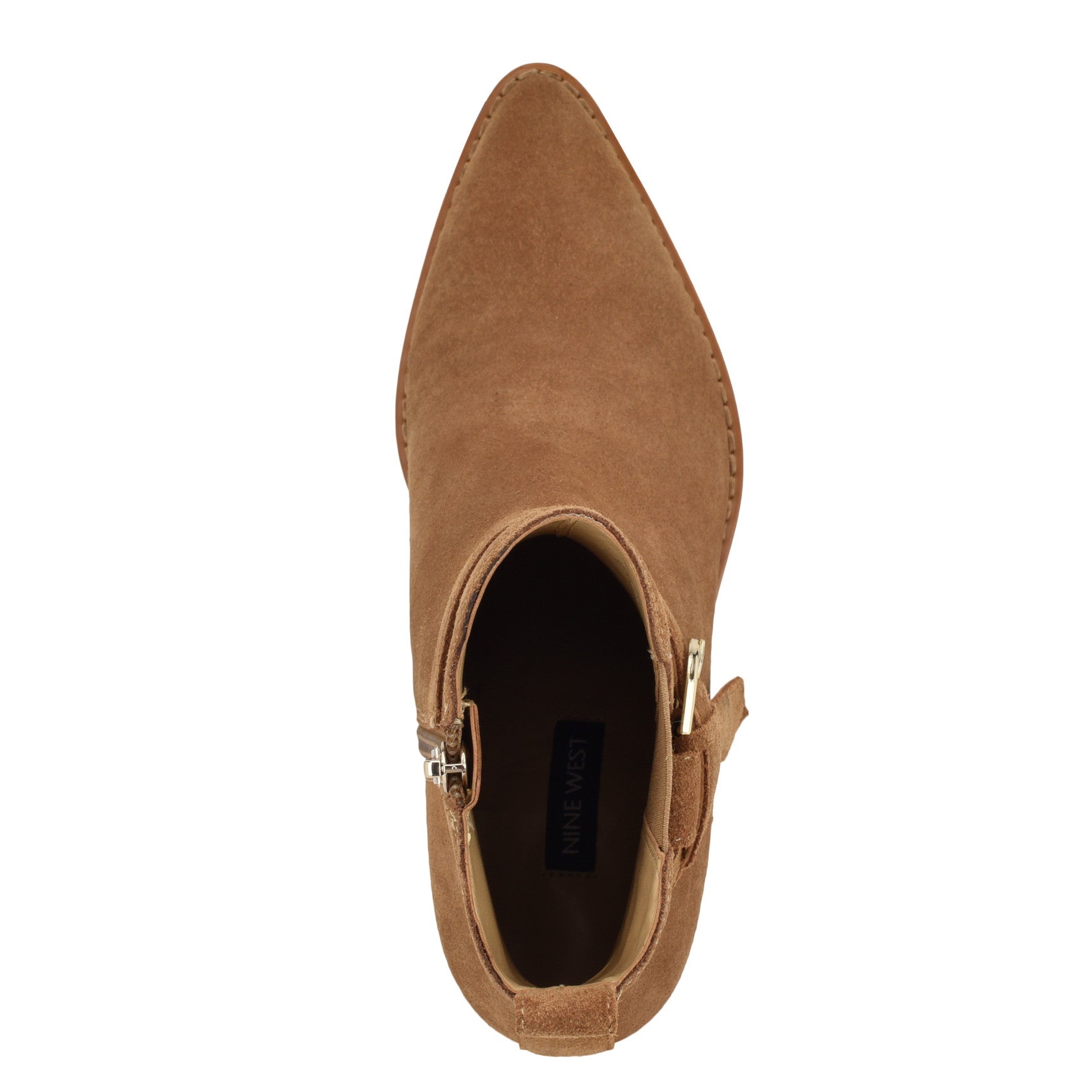 That buckle detail is doing all the work. The Lemone is a pointed-toe ankle bootie with a flared stacked block heel, stretch gore panels for easy on and off, and a polished buckle strap that wraps the shaft with just the right amount of attitude. The kind of bootie that anchors your whole look from the ground up.