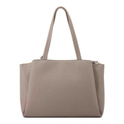 Nine West designer Luela triple compartment tote with internal slip and zipper pocket organization and external hardware details and branding. Includes padded laptop compartment for a great chic career or school tote carryall.