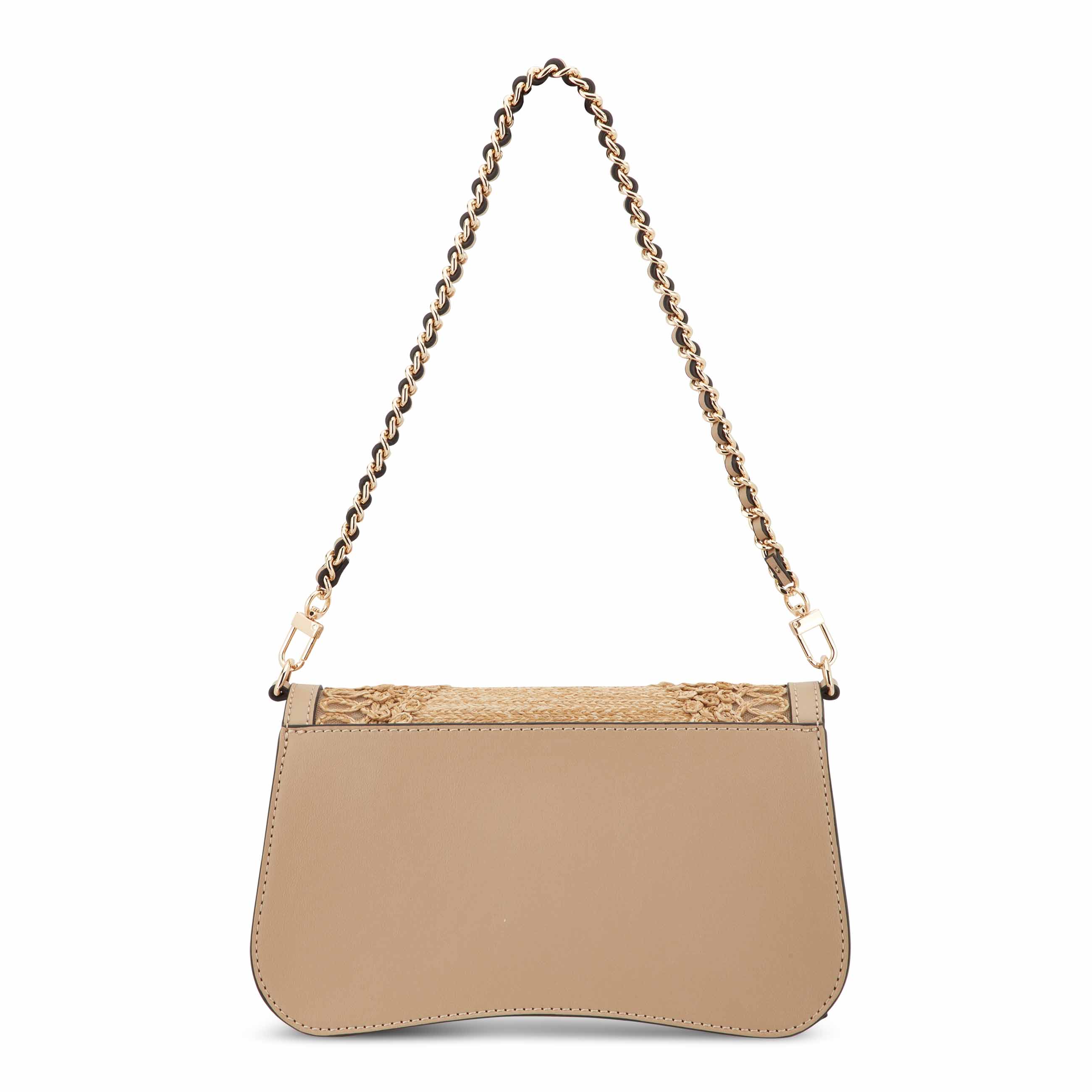 Nine West designer Somi flap chain shoulder bag that converts to a clutch when sliding the chain strap inside. Perfect for all special occasions with the crochet and mesh design accents and matches back to your Nine West shoe. Perfect for special event or just a beautiful show stopper.