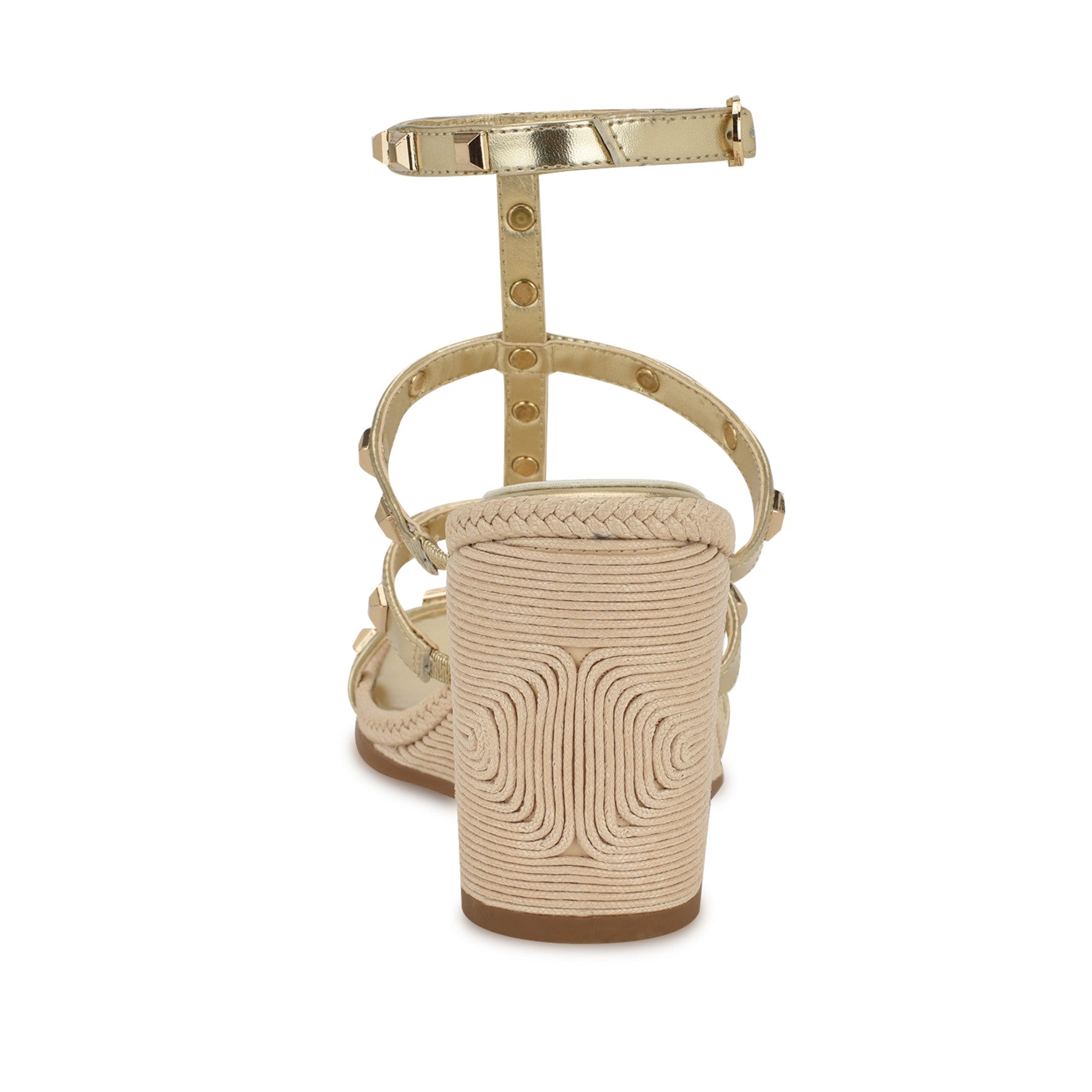 Studded gladiator straps on a wrapped espadrille wedge is the kind of combination that gets you noticed. The Sardis features a caged T-strap silhouette lined with pyramid studs from square toe to buckled ankle strap, sitting on a summer-ready wedge that gives you height without slowing you down. Faux leather construction.