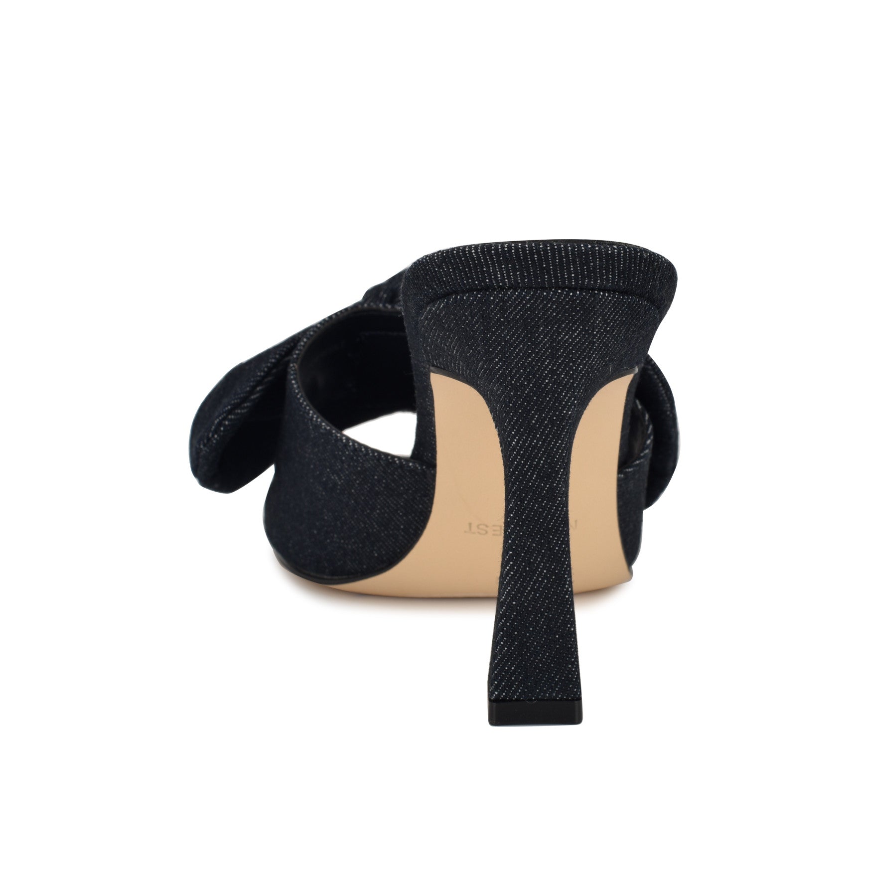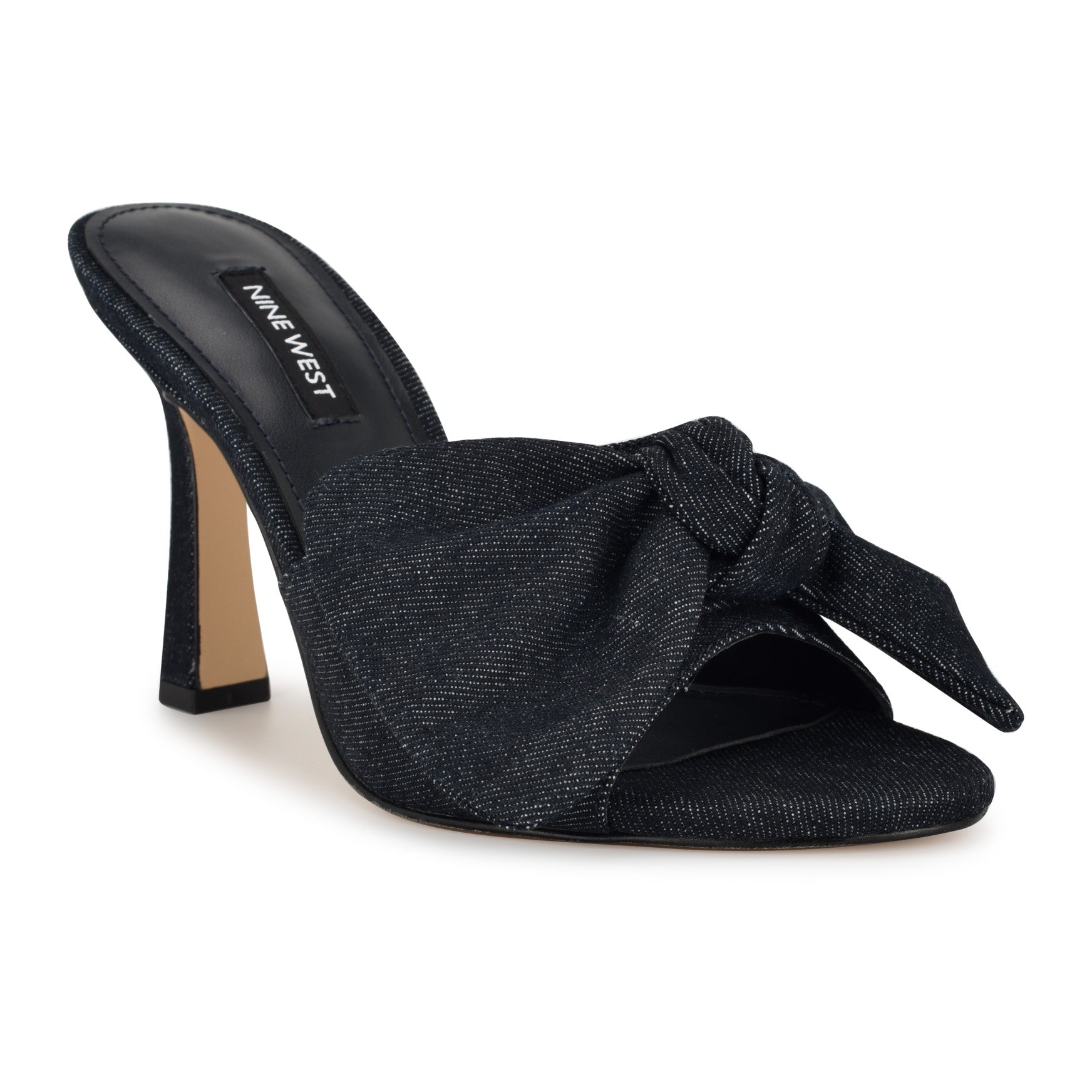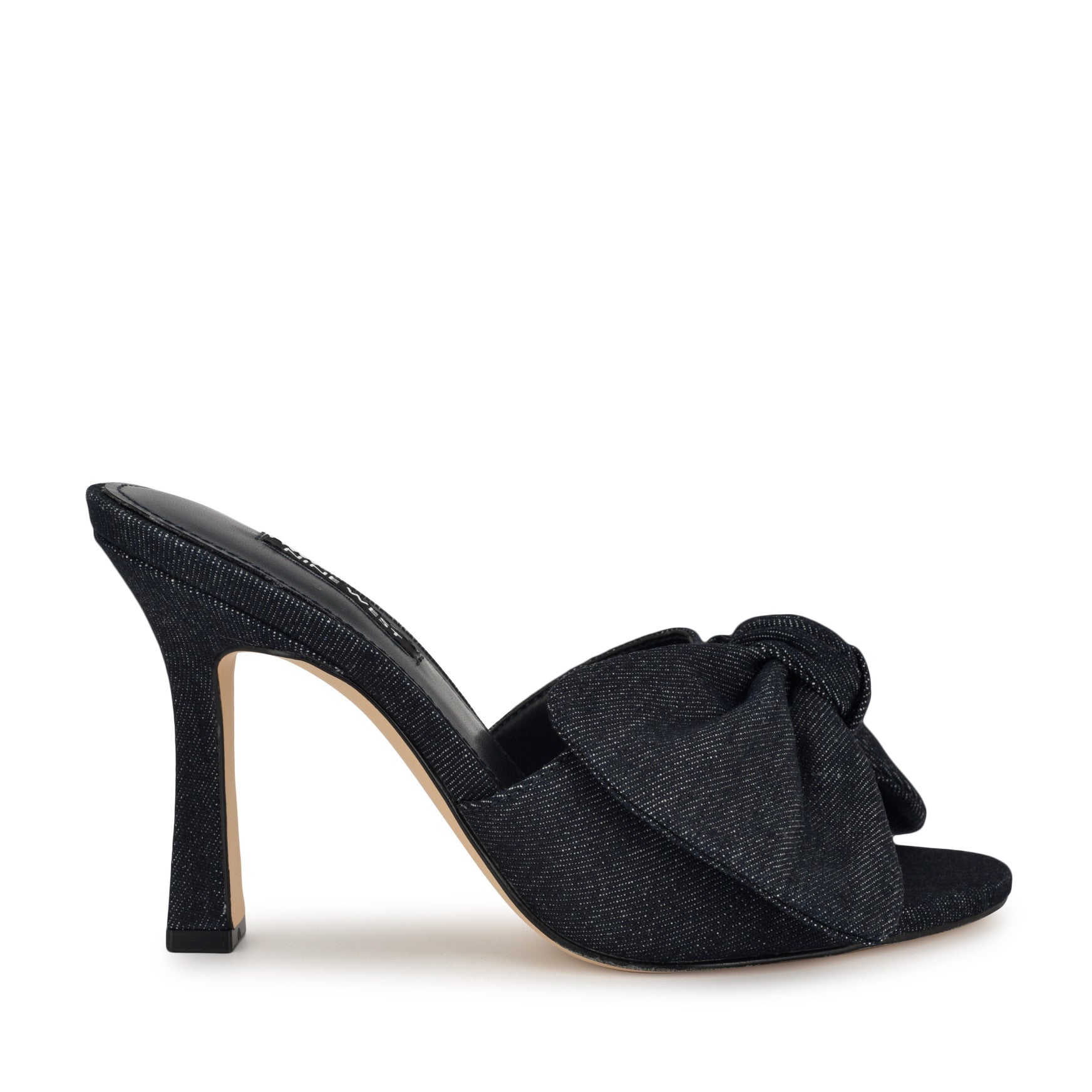 A knotted bow and a sculpted tapered heel make the Trina the kind of mule that turns heads without trying. This open-toe dress sandal slides on effortlessly, letting the oversized bow detail and flared heel silhouette do all the talking. Statement-making from every angle, for every moment that calls for a little more. Materials vary by color.