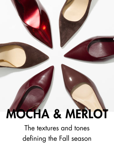 Embrace rich seasonal color with the Mocha Merlot collection, featuring shoes and accessories in bold browns and deep reds. Explore a variety of handbags, versatile boots and booties, effortless flats, and chic loafers. These warm tones bring depth and sophistication to every wardrobe, offering a modern way to refresh timeless silhouettes.