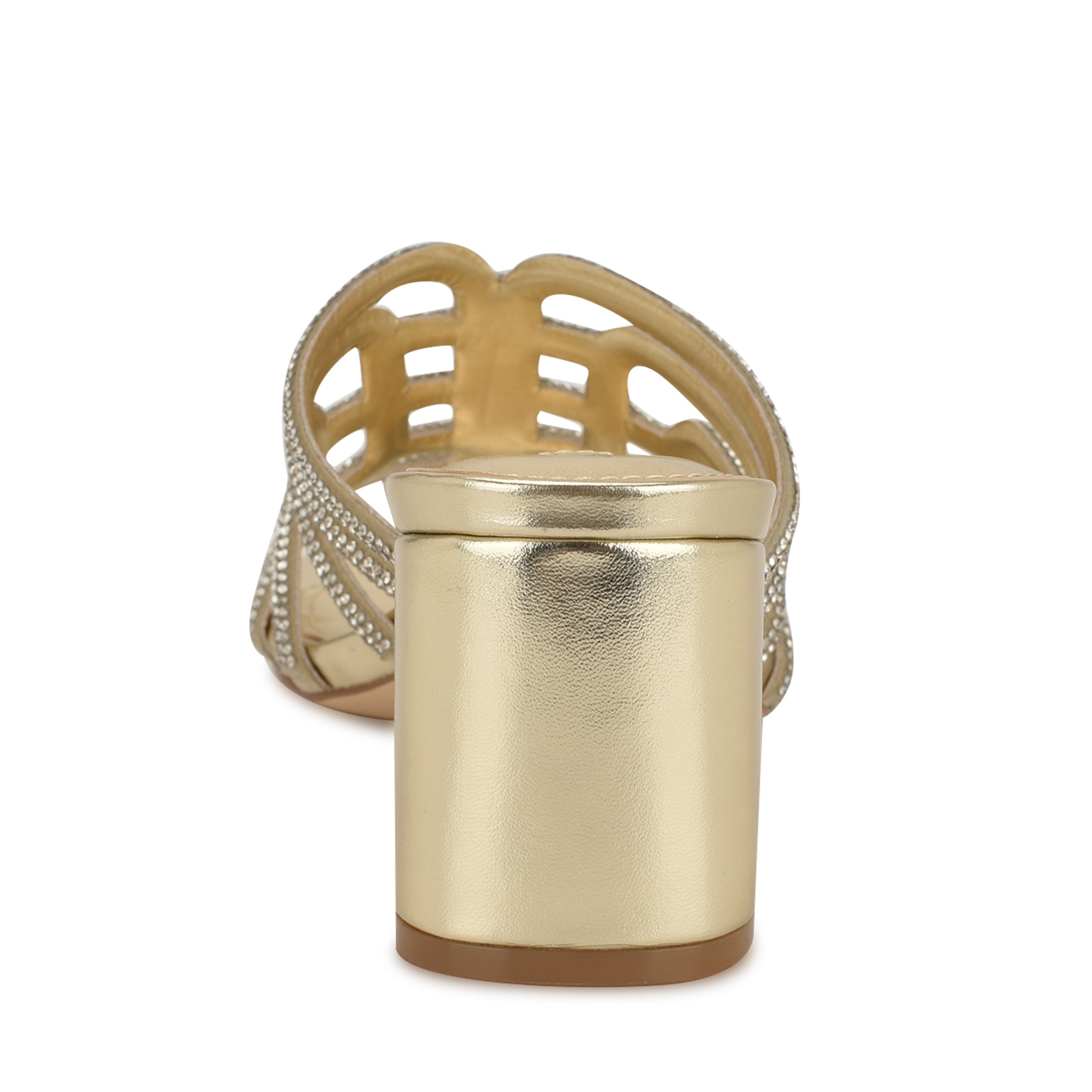 Stylish and cute, the Nine West Grassa dress sandals are the perfect wardrobe staple. Featuring a slip-on silhouette, embellished straps and mid block heel. This sandal is sure to impress!