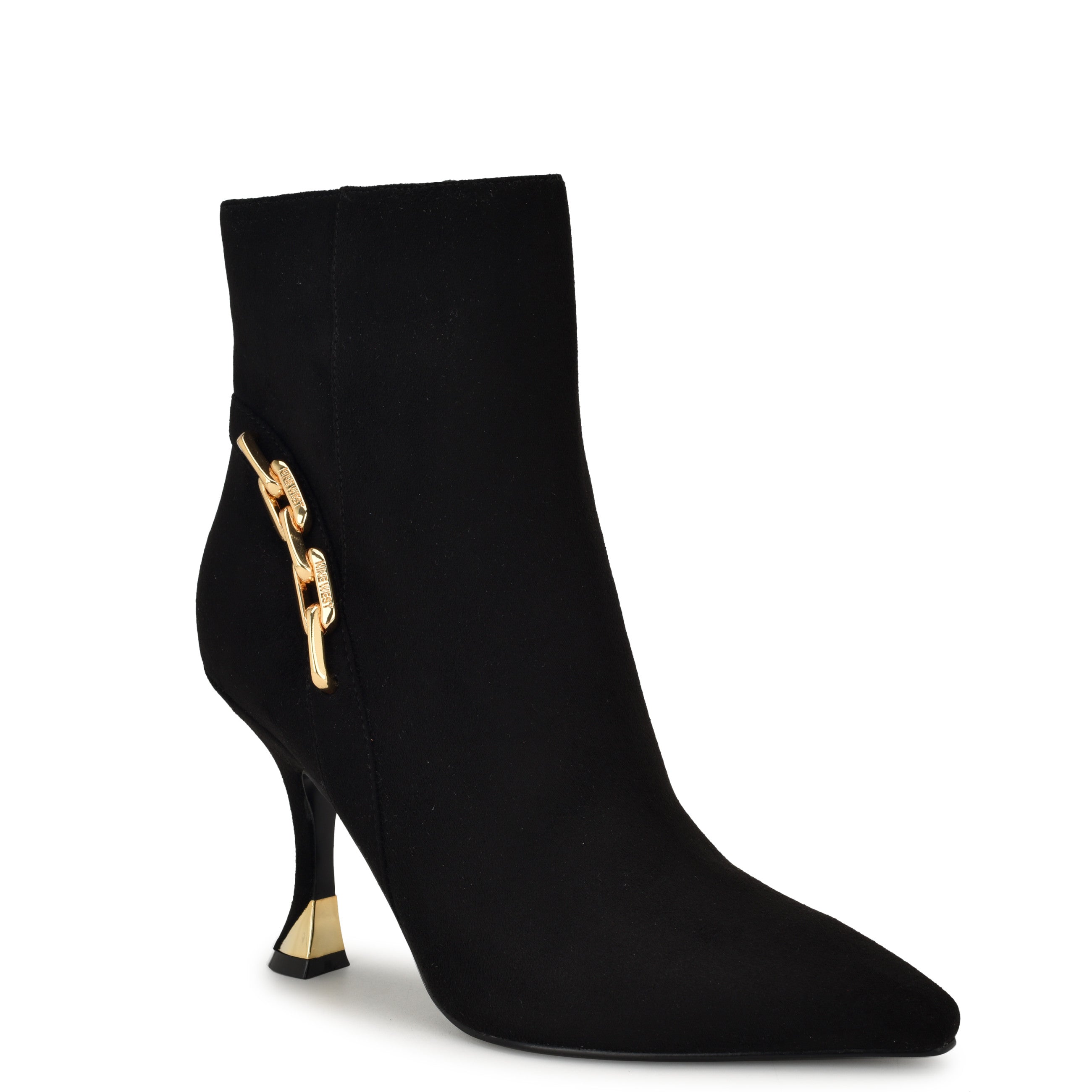 Dress to impress in the Nine West Chaine dress booties. It features a pointy toe, stylish tapered heel and gold chain detailing. The Chaine is the perfect wardrobe staple!