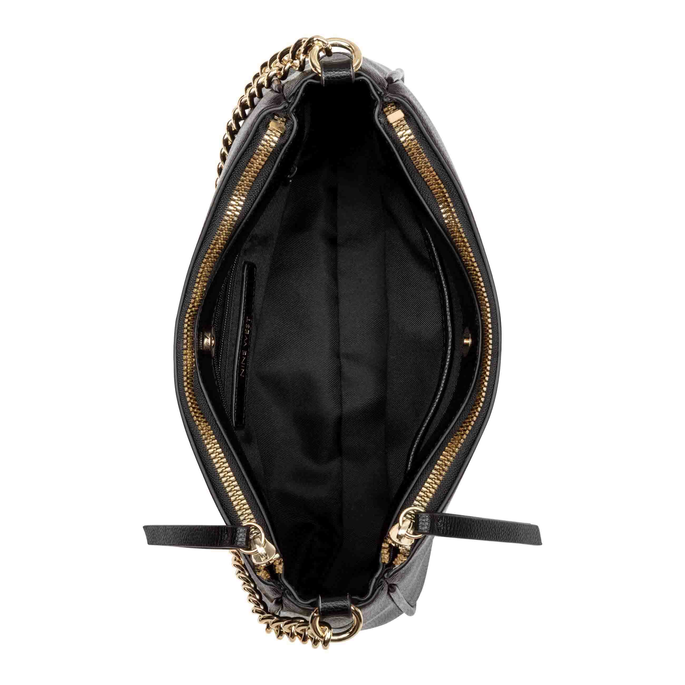 Nine West designer Denzielle convertible shoulder bag. Perfect for all occasions as it is a three in one converting from chain shoulder to longer shoulder as well as crossbody with snap strap function. Internal organization an updated modern enamel hardware.