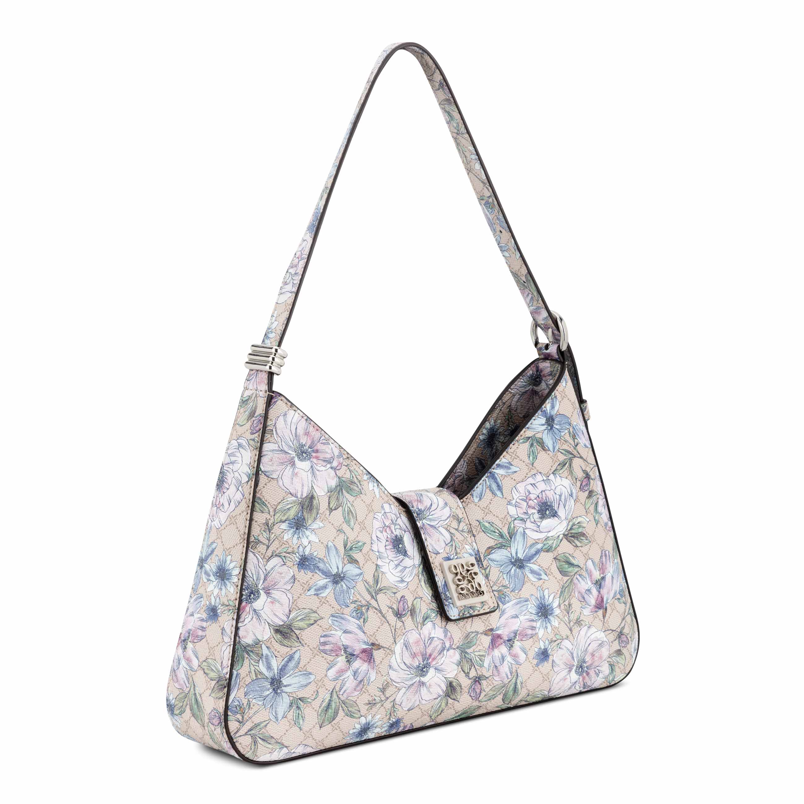 Nine West designer Kallin shoulder bag. Perfect for night out or special occasion with enamel hardware closure. Internal organization including center zipper compartment.