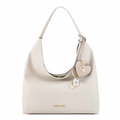Nine West designer Keylee hobo with internal slip and zipper pocket organization and external hardware details and branding. Slouchy silhouette shape for casual style and includes a removable beautiful charm adornment.