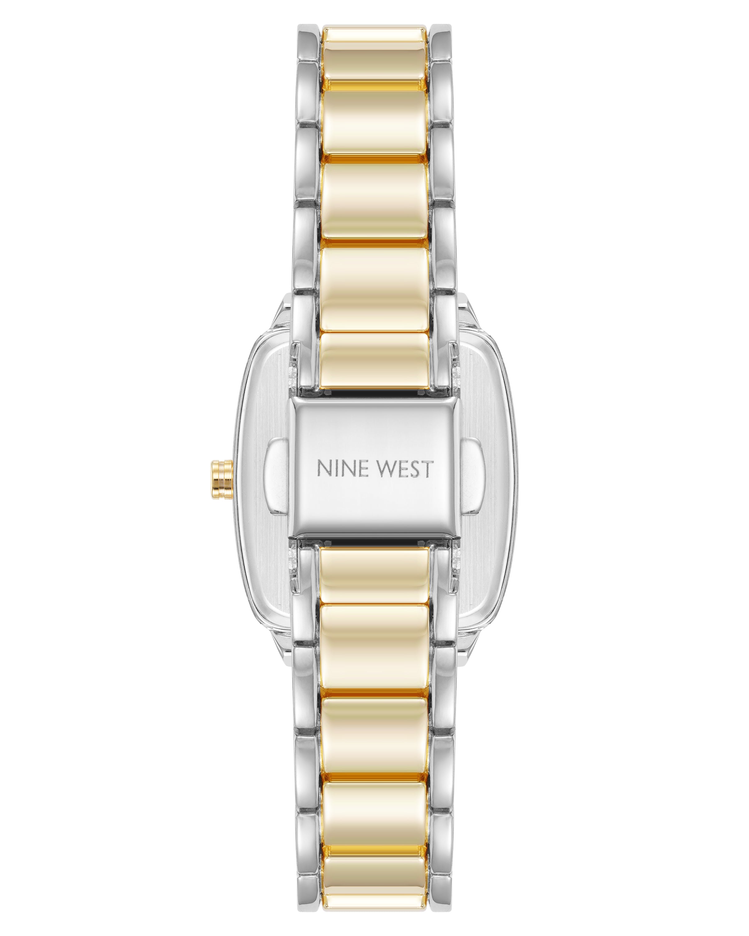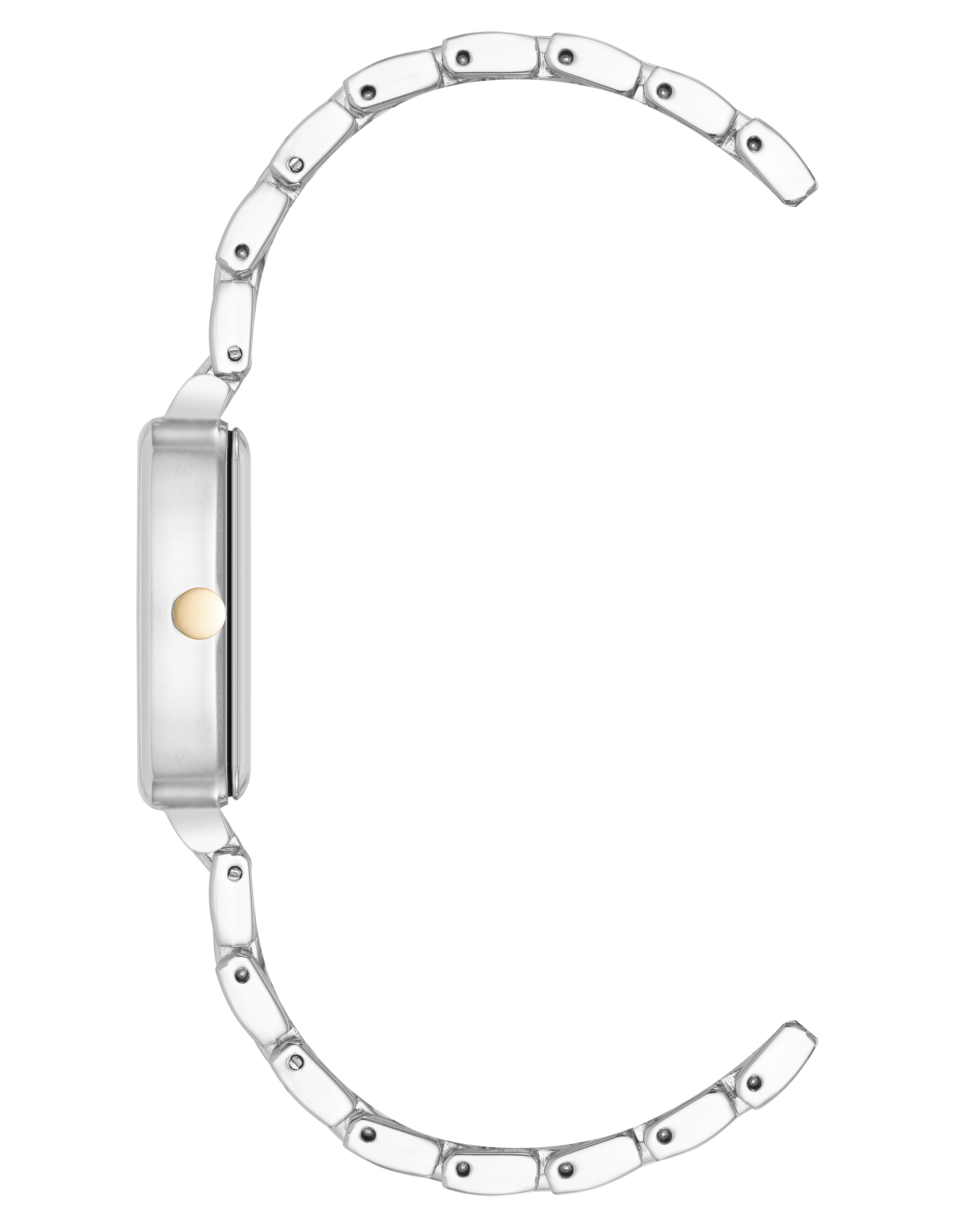 - Adjustable link bracelet; fold over clasp with double push-button safety