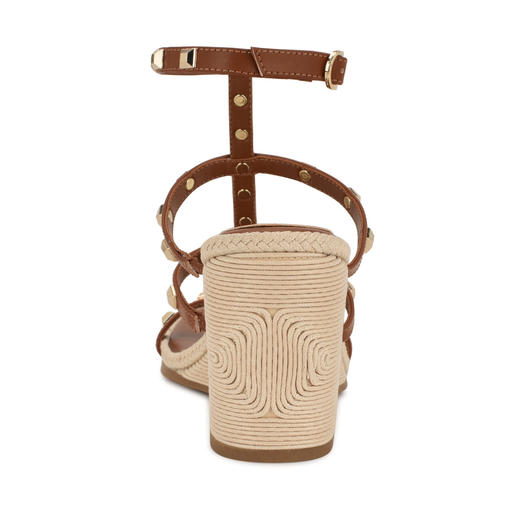 Studded gladiator straps on a wrapped espadrille wedge is the kind of combination that gets you noticed. The Sardis features a caged T-strap silhouette lined with pyramid studs from square toe to buckled ankle strap, sitting on a summer-ready wedge that gives you height without slowing you down. Faux leather construction.